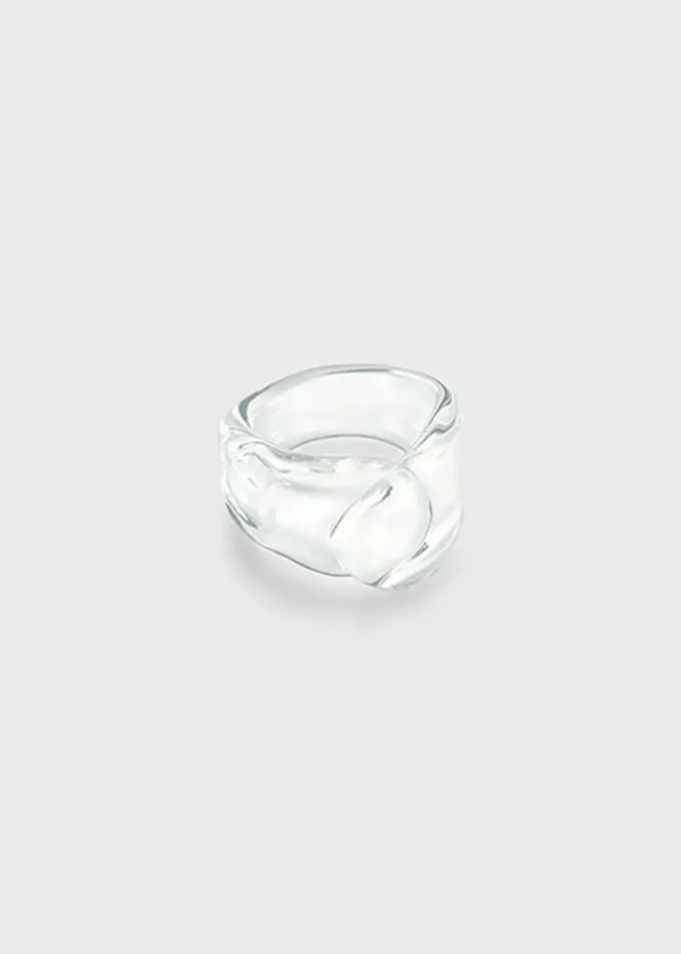 Hand shaped folded borosilicate glass ring by Scandinavian designer and artist Annika Inez.
