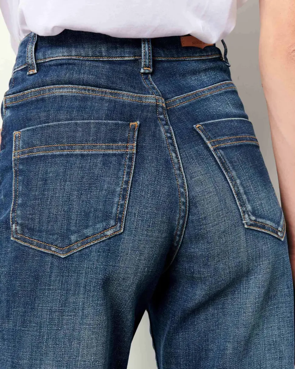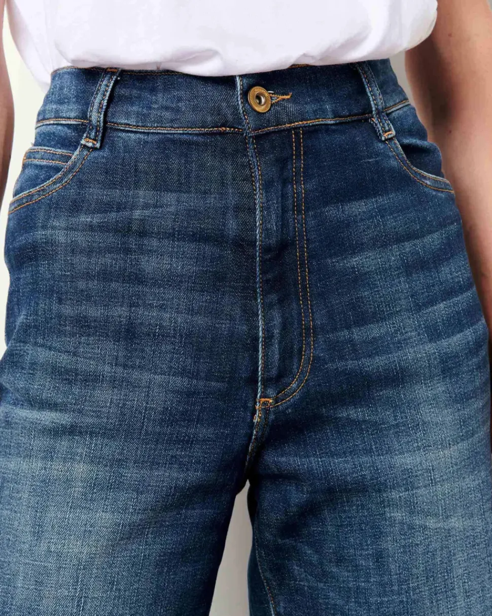 A-line Bay Cruise in stonewashed denim of recycled and organic cotton mix.