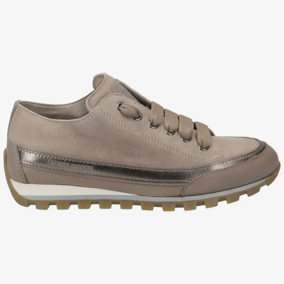The coloured suede upper is completed by padded leather inserts on the bottom, in addition to the visible stitched edge.
