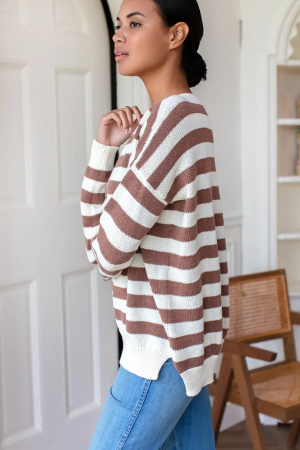 A relaxed, go-to, year-round sweater in a boxy silhouette. Creates an easy, balanced shape on the body and pairs well with any bottom. Drop panel detail in back provides a bit more coverage.