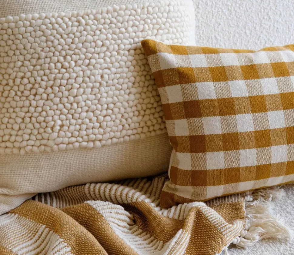 The Cruz Throw Pillow offers a layer of warm texture in this versatile natural color.