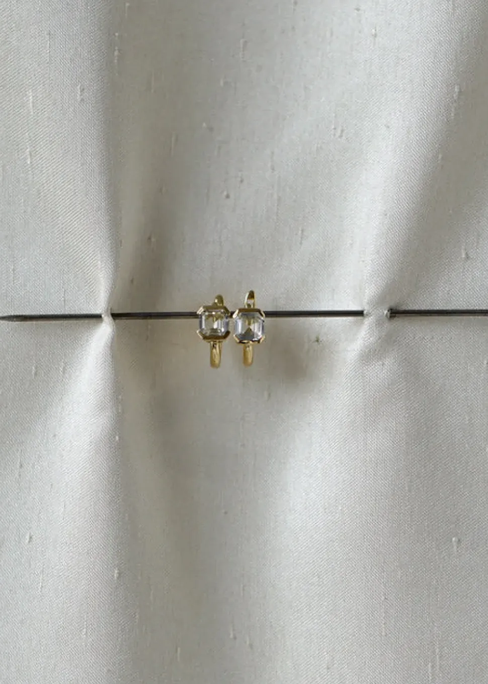A sophisticated statement in Otiumberg’s signature soft neutral palette, the Domino huggies are handcrafted in 9 karat solid gold, with a choice of smokey quartz gemstone or white topaz.