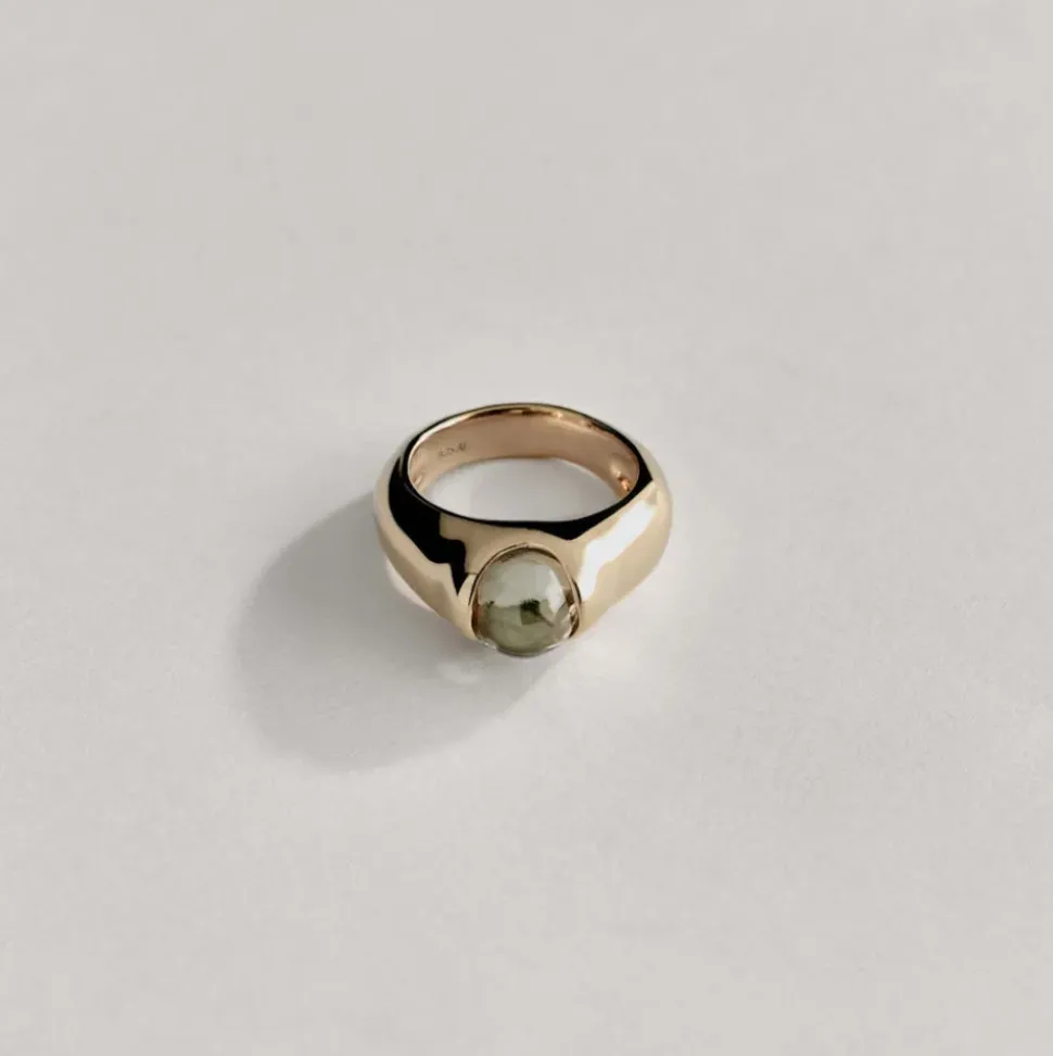 An everyday ring with a moving stone set in the center.