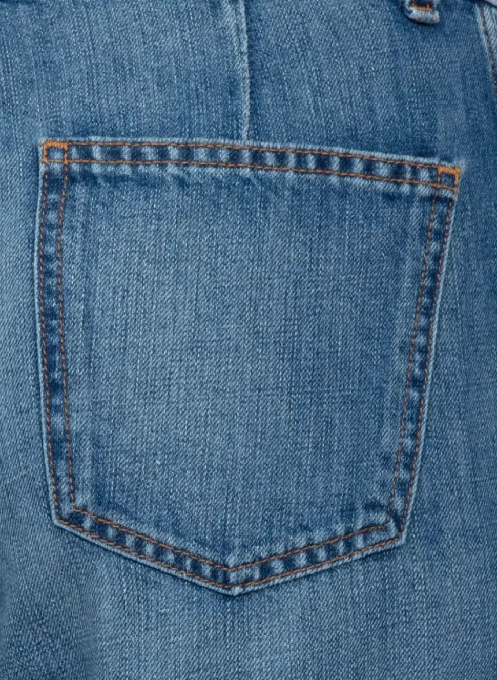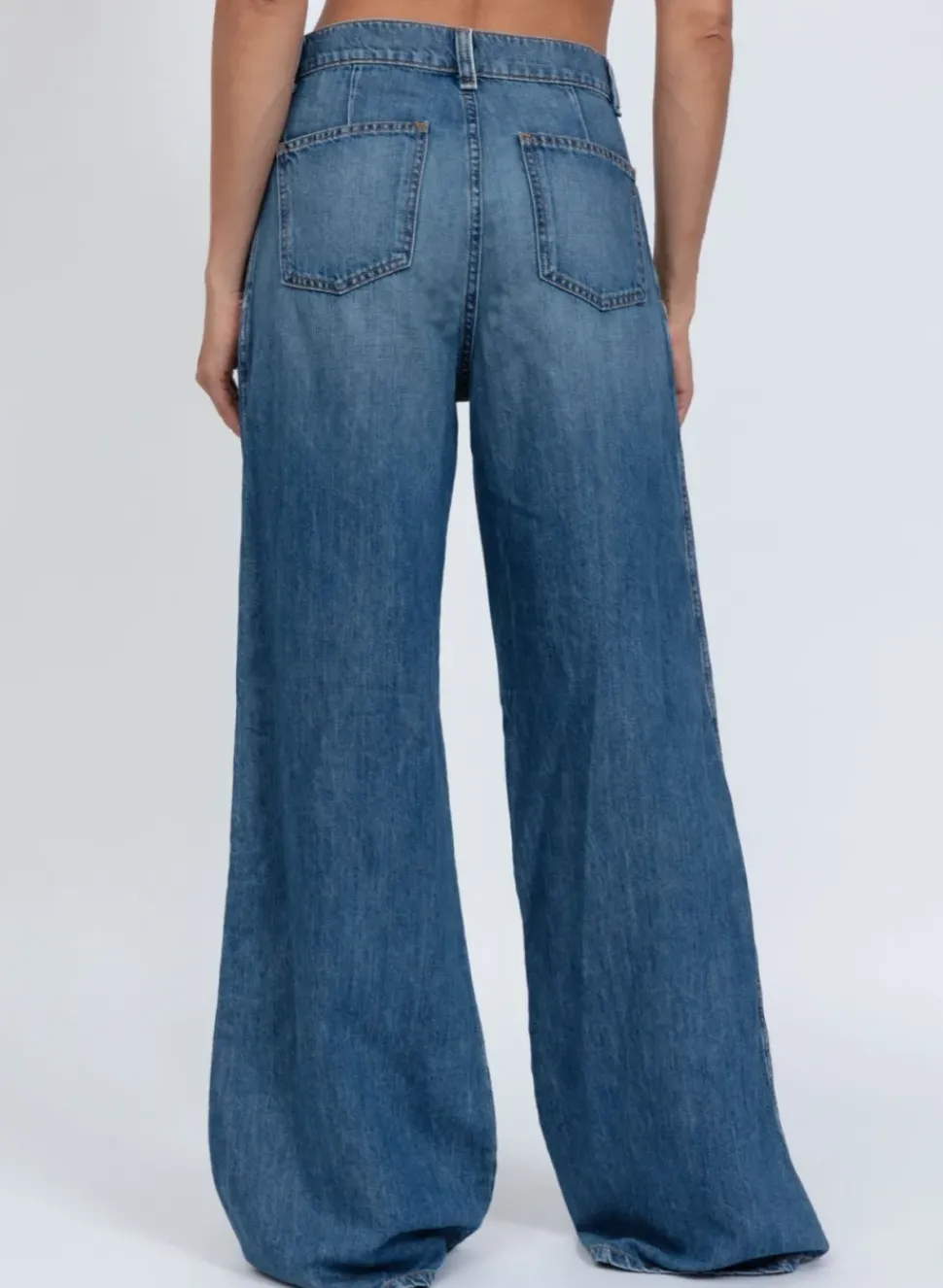High Rise slim fit wide leg jean with double button waistband. Light weight in a stretch wide wale corduroy.