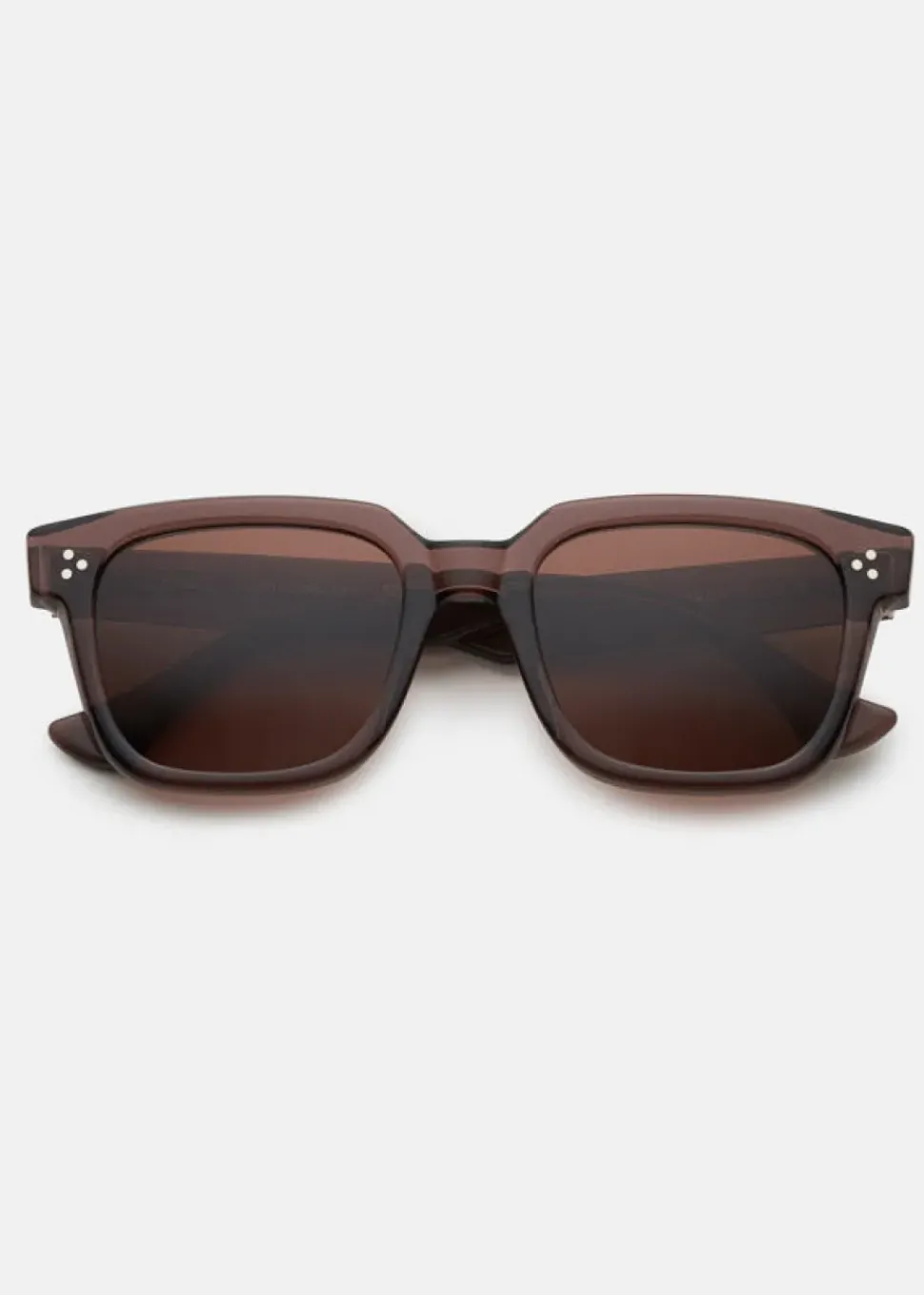 Dark brown eco acetate frame with matching bio nylon lens offering 100% UVA + UVB protection. Cactus leather case + 100% recycled cleaning cloth.