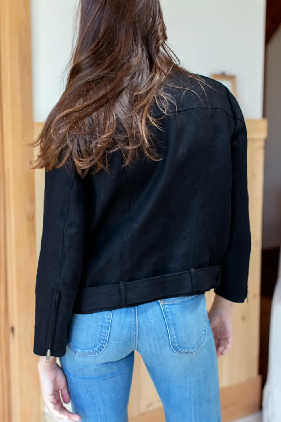 The Irving Moto is the perfect jacket for transitional seasons and warmer winter climates due to its medium weight linen fabrication.