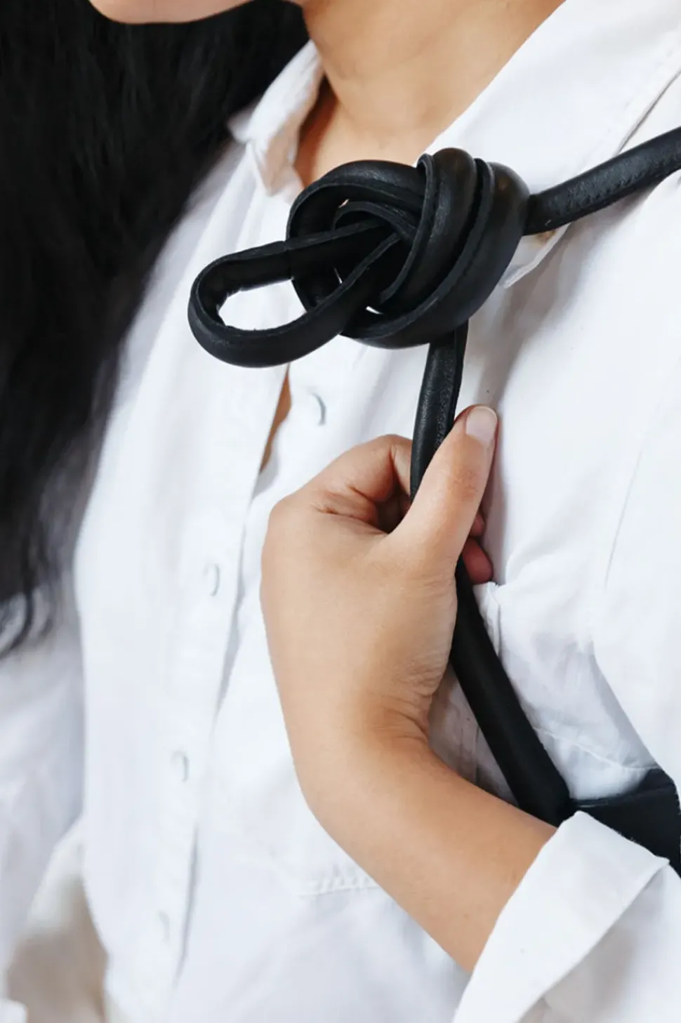 Dress it up or wear it every day: a soft, half-moon shape that can be worn tied or across the body in several ways. Unlined with a magnet closure. Made from chrome-free leather with a smooth, buttery finish.