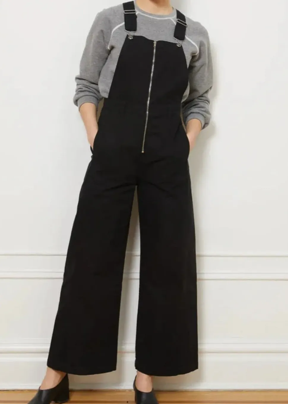 Zip up overalls with a relaxed barrel leg, adjustable straps and tons of details.