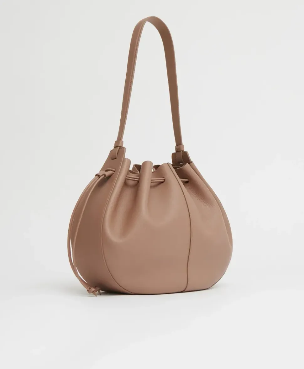 Crafted from our soft Italian tumbled leather, the Flores Bag is inspired by blooming florals. A two-sided drawstring closure creates a petal effect and provides easy access to a spacious suede interior.