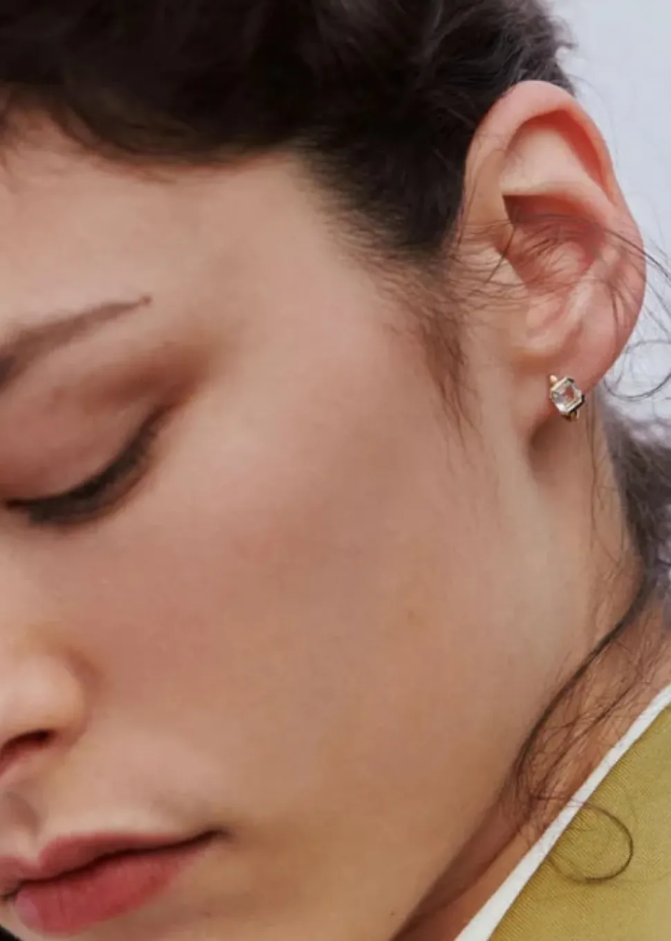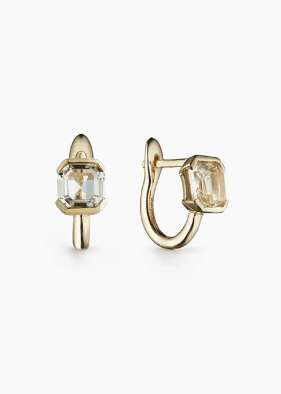 A sophisticated statement in Otiumberg’s signature soft neutral palette, the Domino huggies are handcrafted in 9 karat solid gold, with a choice of smokey quartz gemstone or white topaz.
