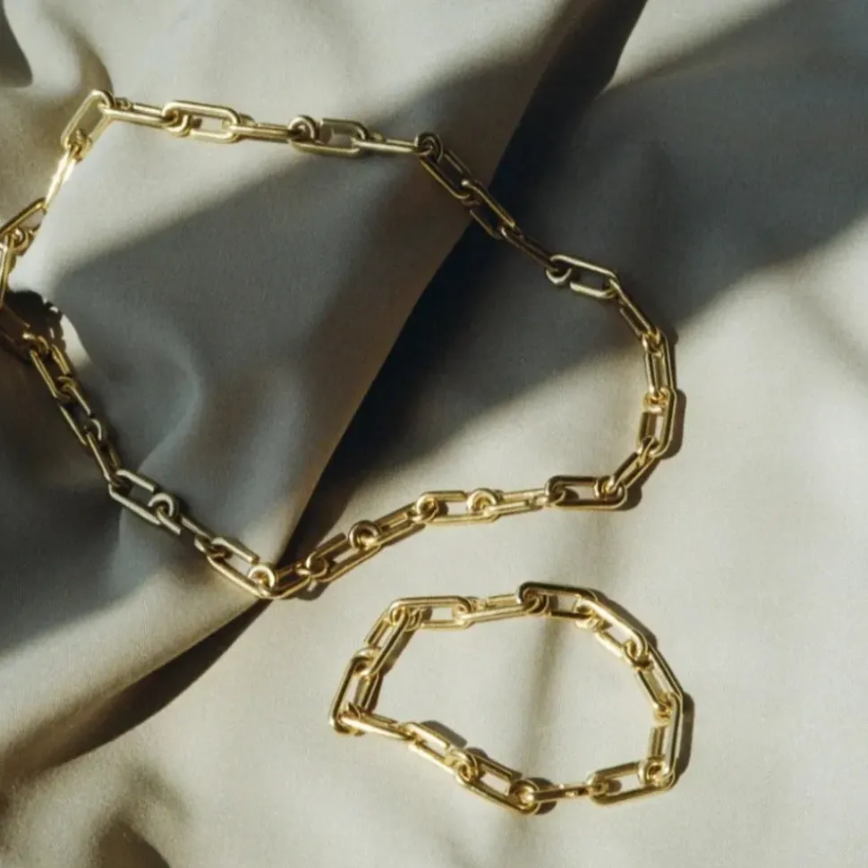 Sterling silver Arena chain necklace and the Arena gold chain bracelet are also available.