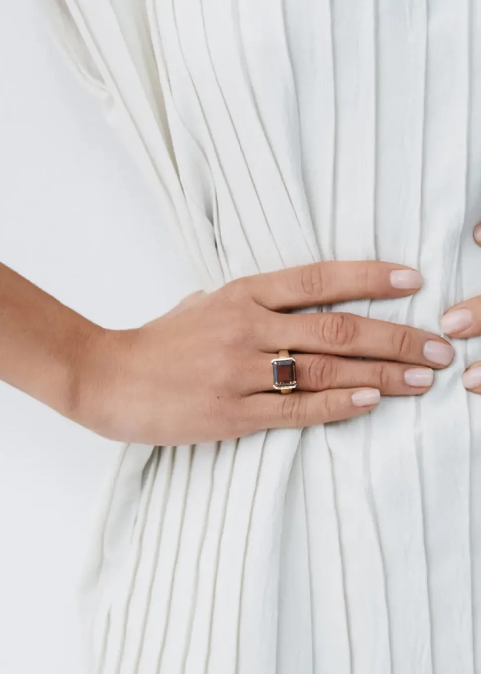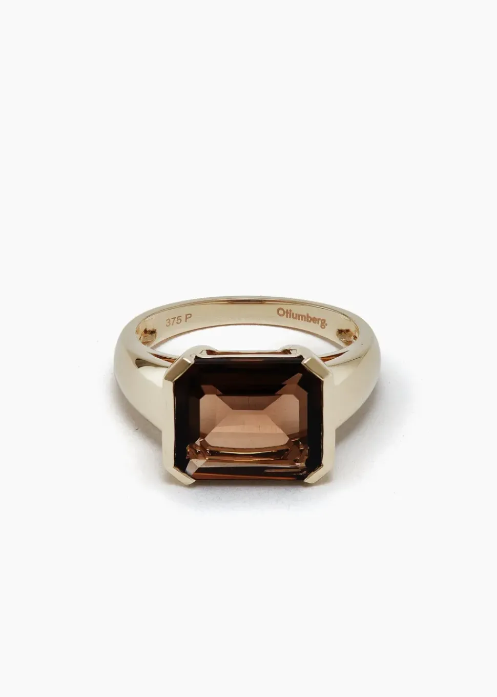 A sophisticated statement in a soft neutral palette, this Smokey Quartz ring is handcrafted in certified recycled 9-karat solid yellow gold.