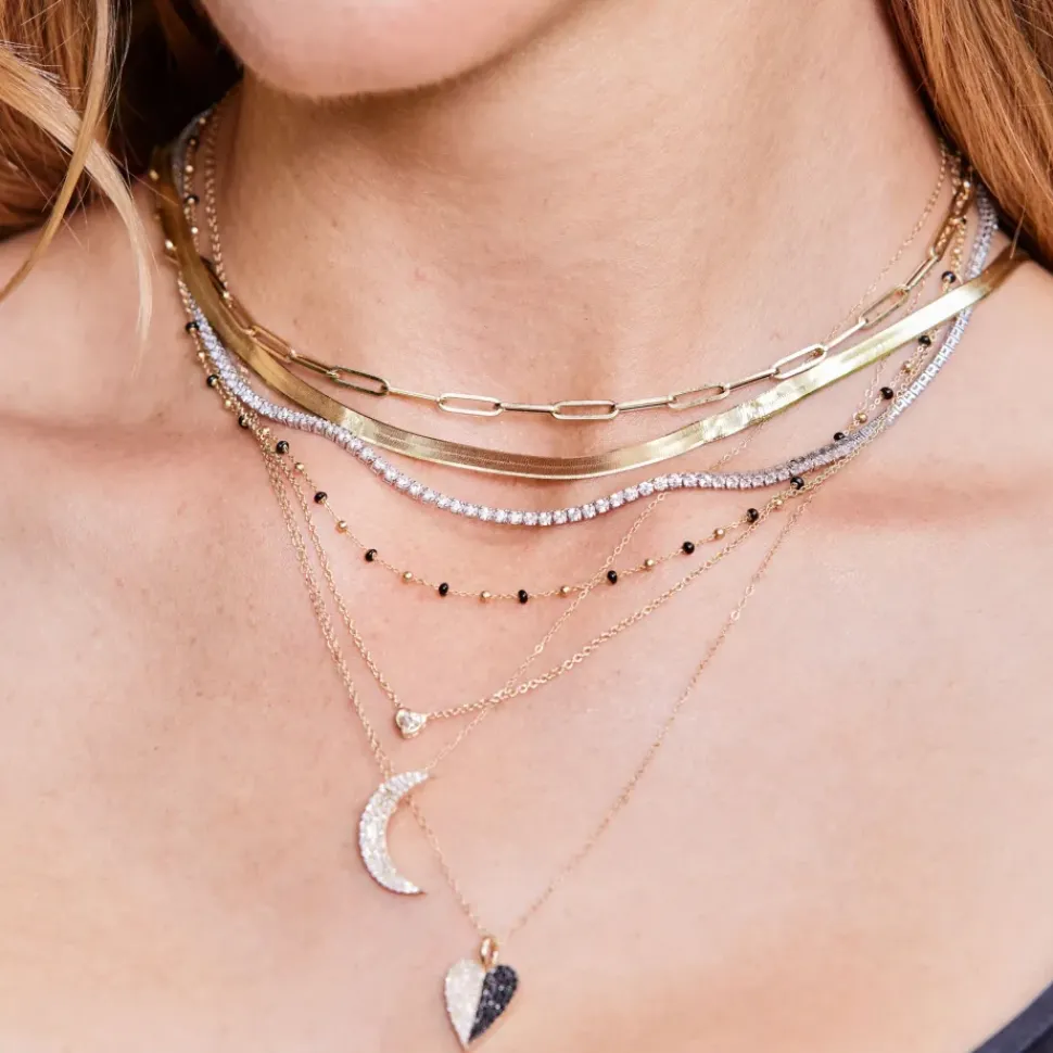 This 14K yellow gold necklace features a beaded satellite chain with black enamel dots. Perfect to layer with your other chains or necklaces.