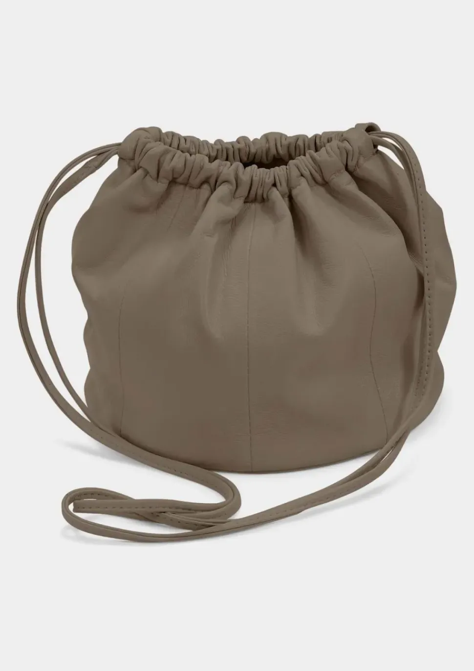 Introducing – The Drum Drawstring Bucket A paneled drum shape in soft soft leather. Cinches closed at the top.