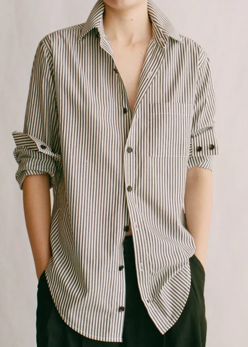 Made in 100% cotton grown in the USA, spun in Turkey, and finished in Portugal, with traceable, upcycled buffalo horn buttons sourced from New York’s Garment District.
