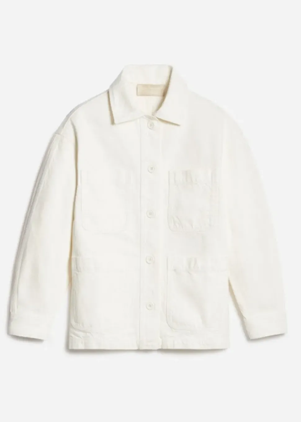 The Neli jacket in ecru denim combines utilitarian style with modernity. With its straight, oversized cut, it offers a casual yet elegant look. Large patch pockets, contrast stitching and visible buttons give it a functional, timeless edge. With its classic collar and roll-up cuffs, it combines comfort and style. Versatile, this jacket is perfect for both chic and casual outfits, ideal for mid-season days.