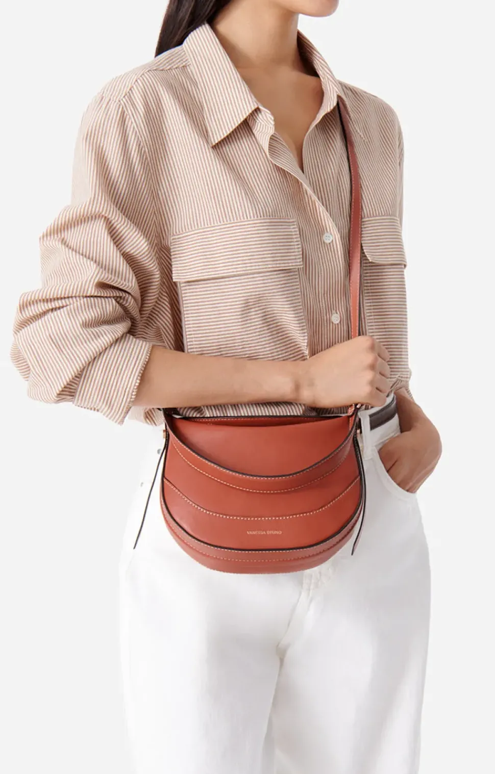 Mini half-moon bag in smooth leather.